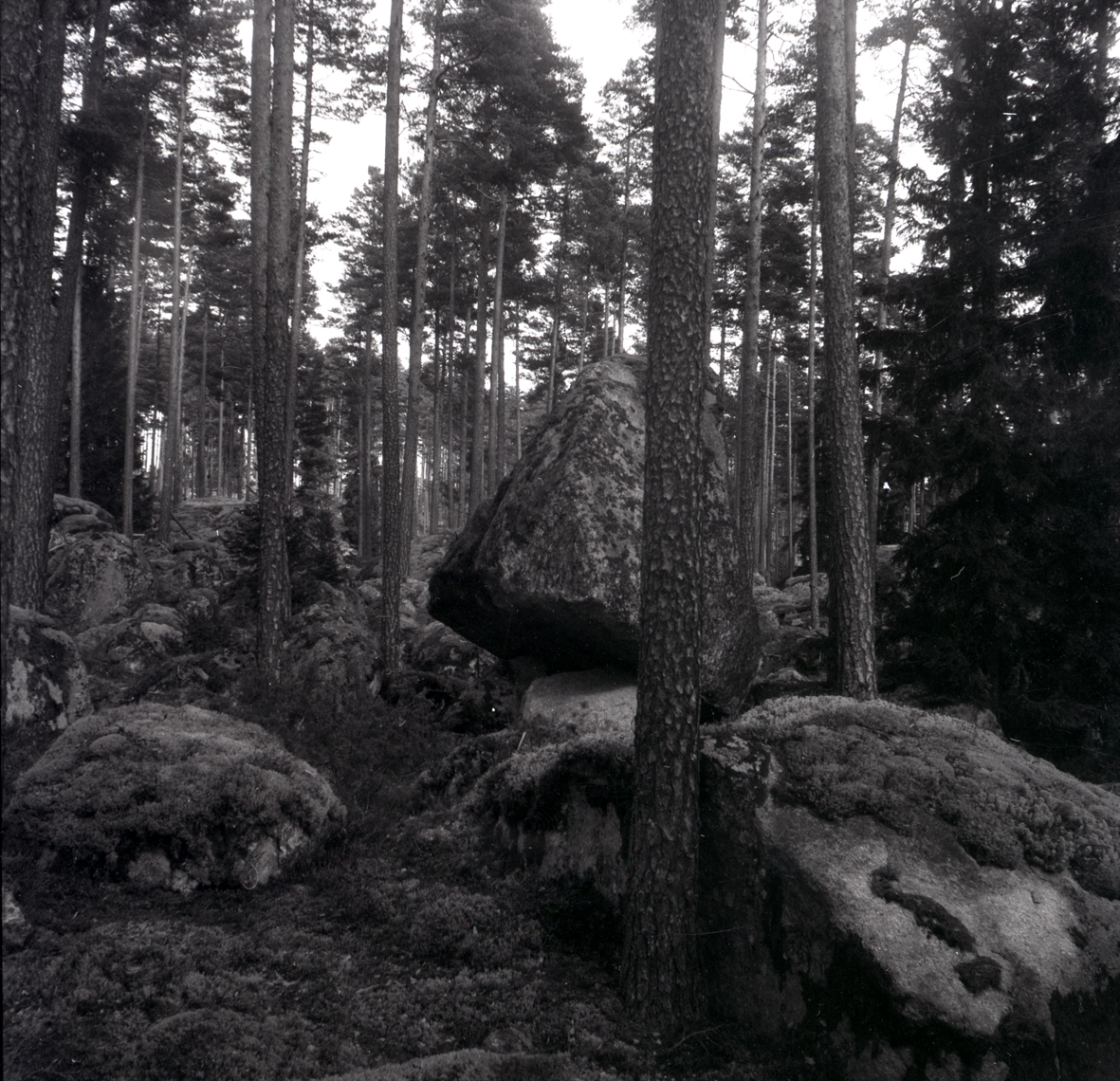 Nationalparken i Norra Kvill. Skog och flyttblock.