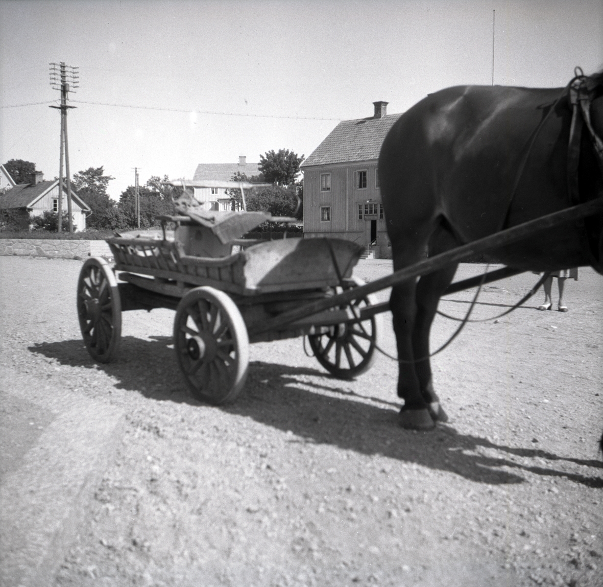 Torget i Figeholm, åkvagn, på en bild förspänd med häst.
