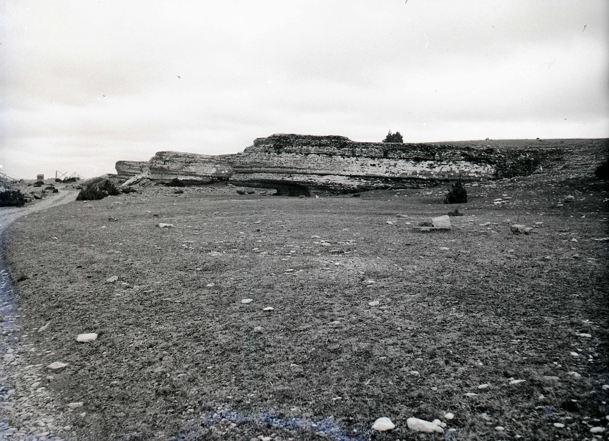 Vy med rauk och grusväg till vänster på Öland.