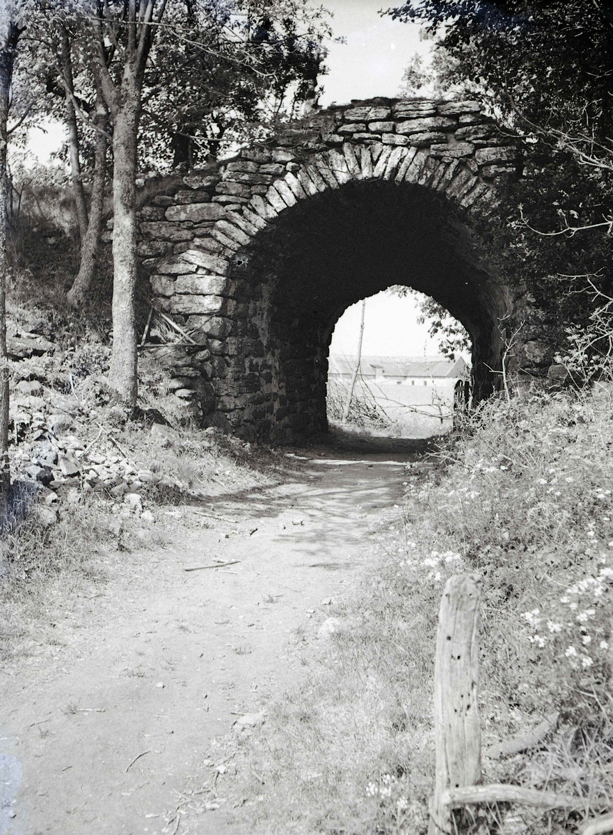 Det medeltida portvalvet i Gråborg innan det rensades från träd och buskar.