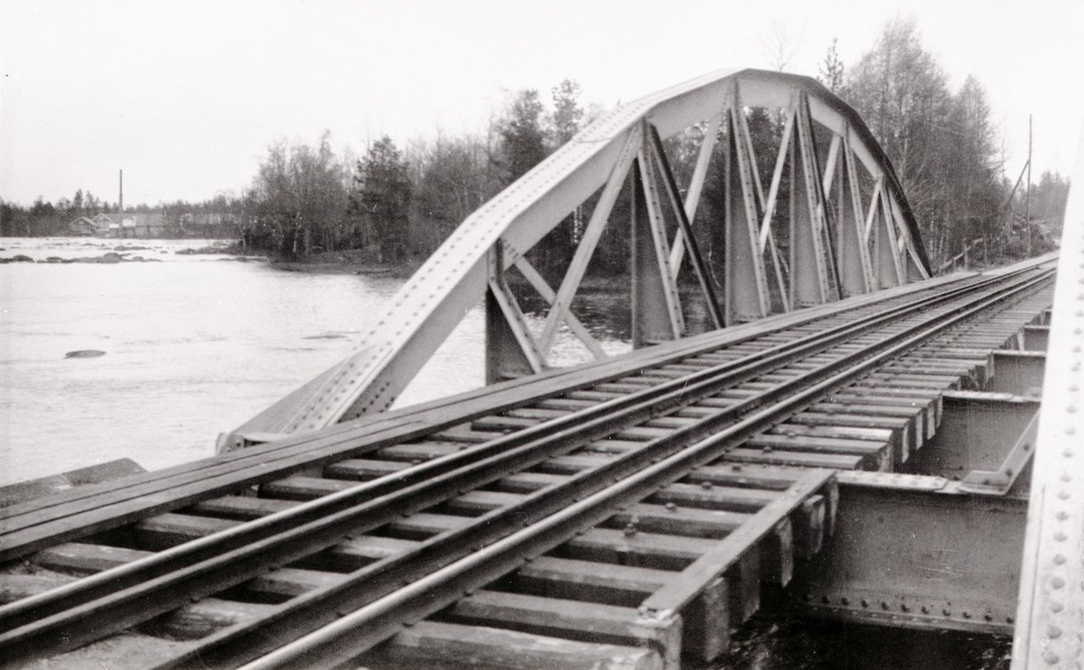 Järnvägsbron över Alsterån med Sandslätts möbelfabrik i fonden år 1928.
