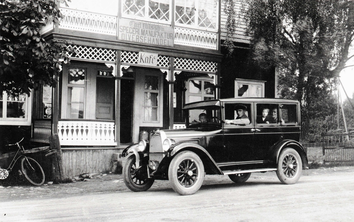 Karl Nilssons affär i Kråksmåla år 1928 (i samma hus är Kråksmåla sparbank inrättad till höger och nedre botten om verandan).