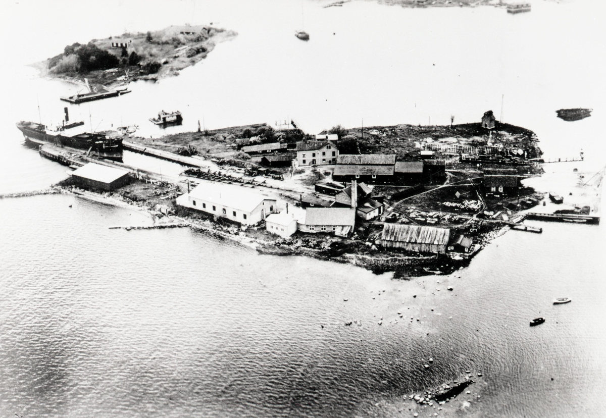 Vy från norr med Varvsholmen och Laboratorieholmen. I bakgrunden syns klapphuset på Kattrumpan.