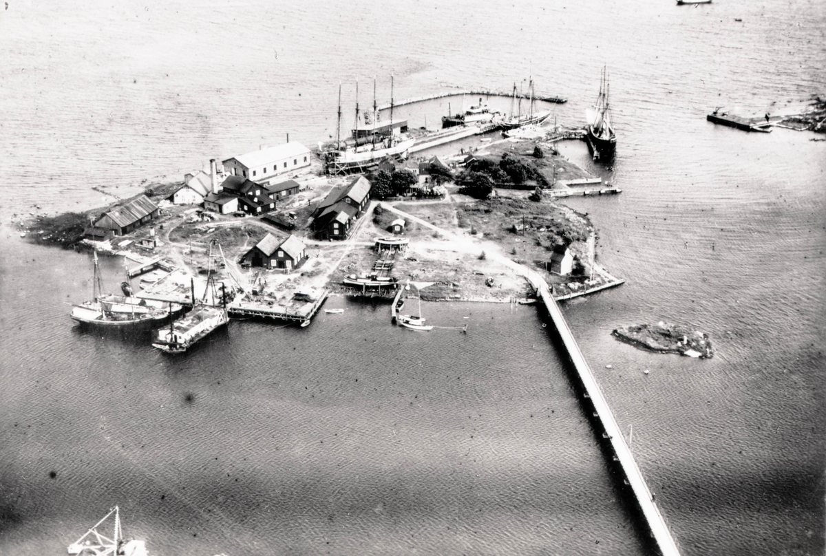 Vy med Varvsholmen och bron till Ängö i förgrunden.