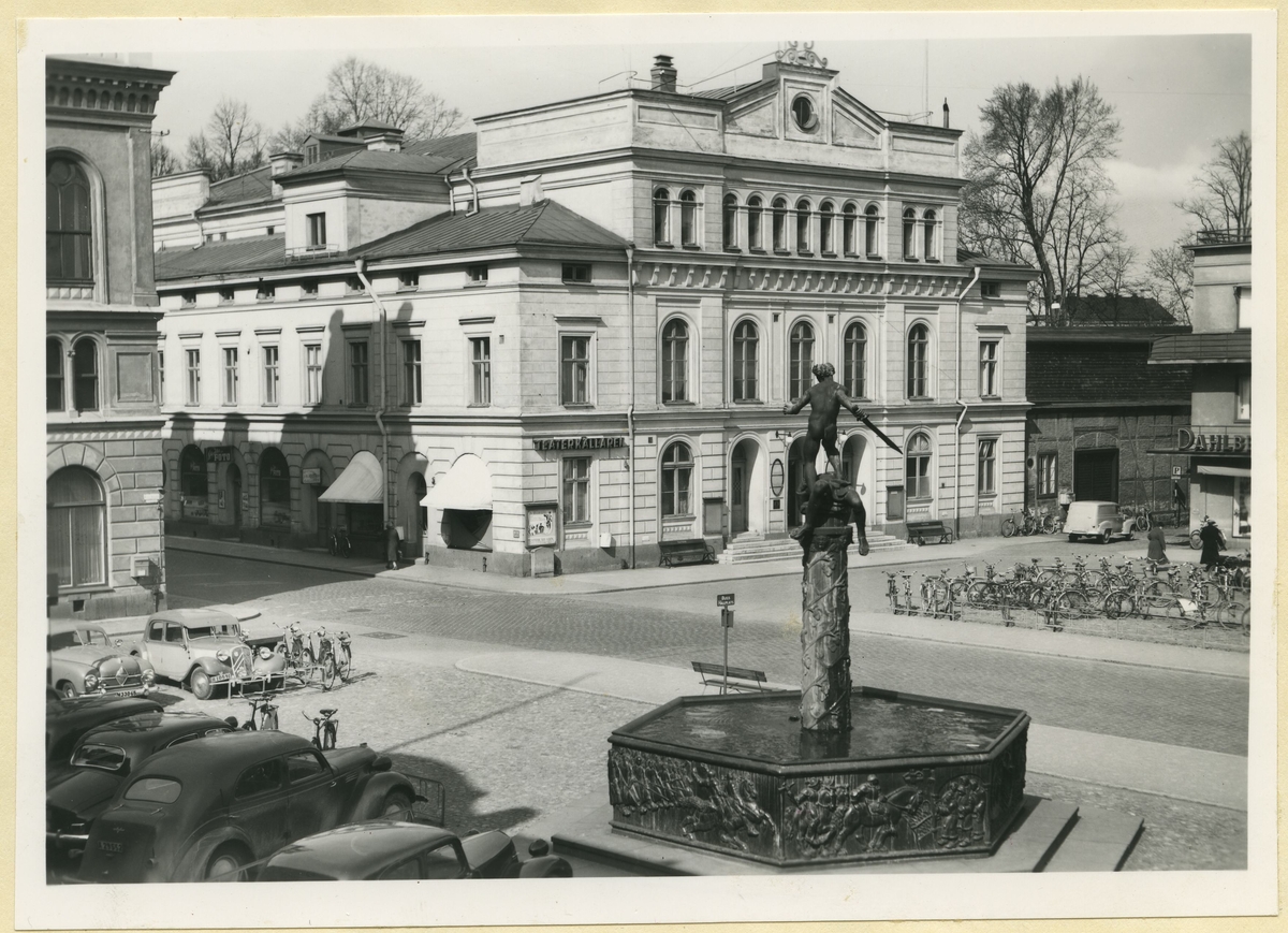 Vasabrunnen och Teatern, korsningen Västra Vallgatan och Storgatan.