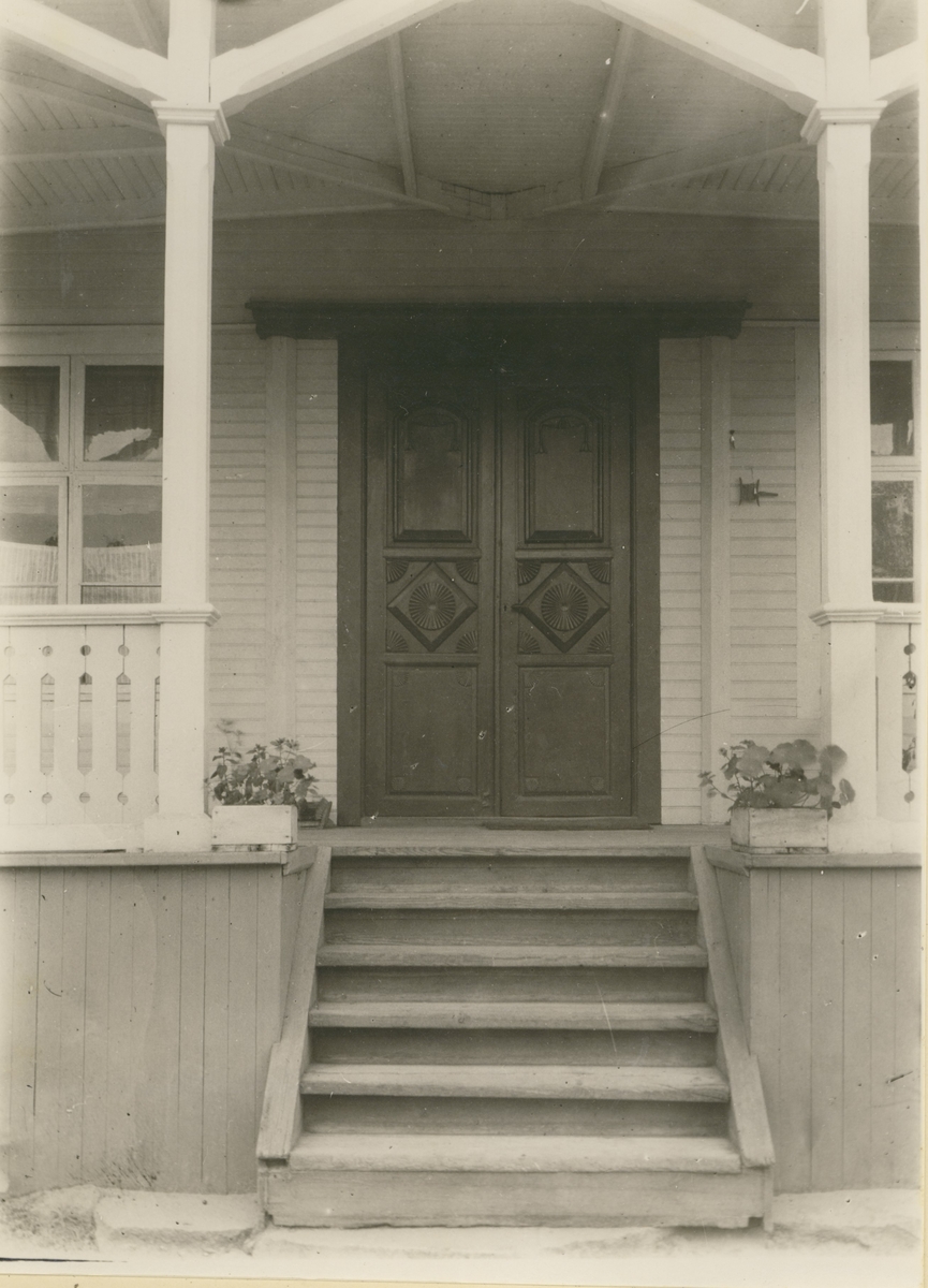 Huvudbyggnaden: snidade dörrar, handmålade (av samma typ som på Tribäck.
