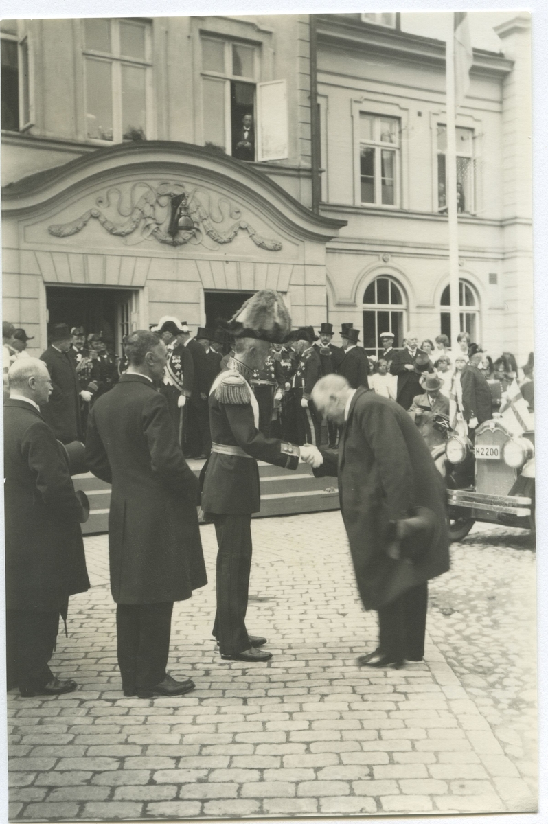 Gustav V anländer till Kalmar för att inviga Vasabrunnen på Larmtorget.
