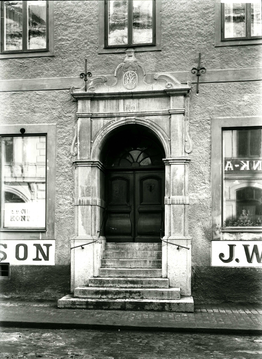 Porten till gamla Apoteket (rådman Carl Jönssons gård). Varje dörr är gjord av en enda ekplanka.