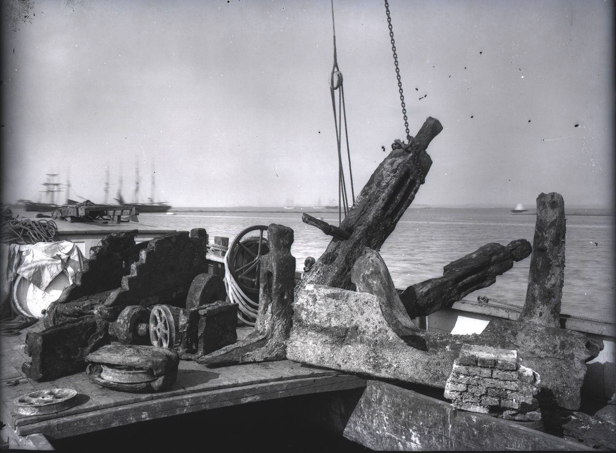 Bärgade föremål från fartyg i Kalmar hamn.