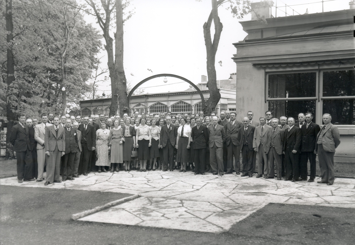 Medlemmar ur jordbrukarförening som sammanträtt på Teatern avbildade på Teatervallen.
