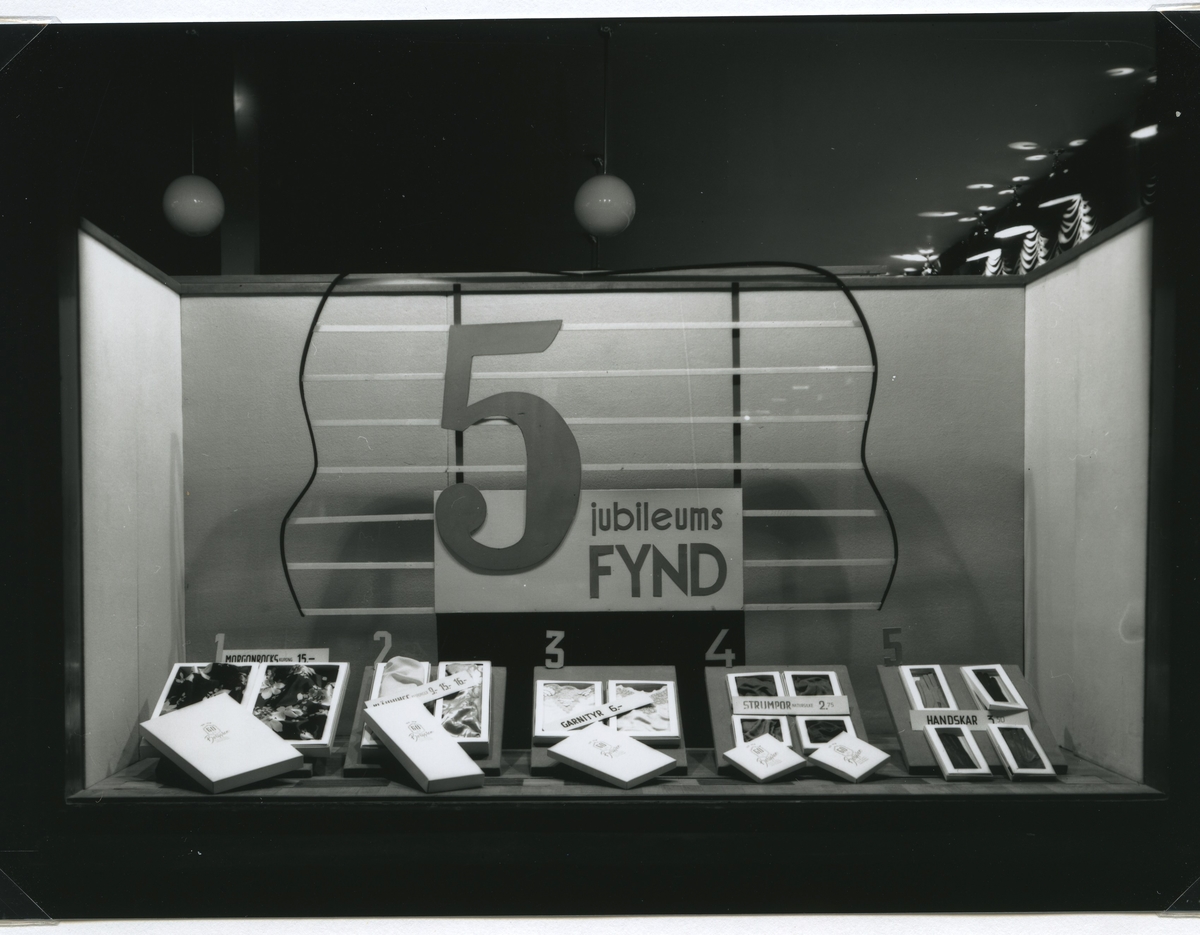 Skyltfönster hos AB Bröd. Berggren. Manufakturhandlare.
