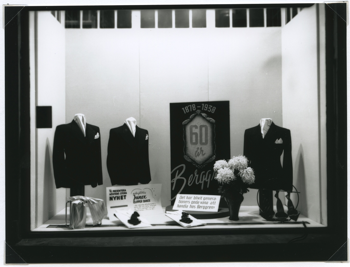 Skyltfönster hos AB Bröd. Berggren. Manufakturhandlare.