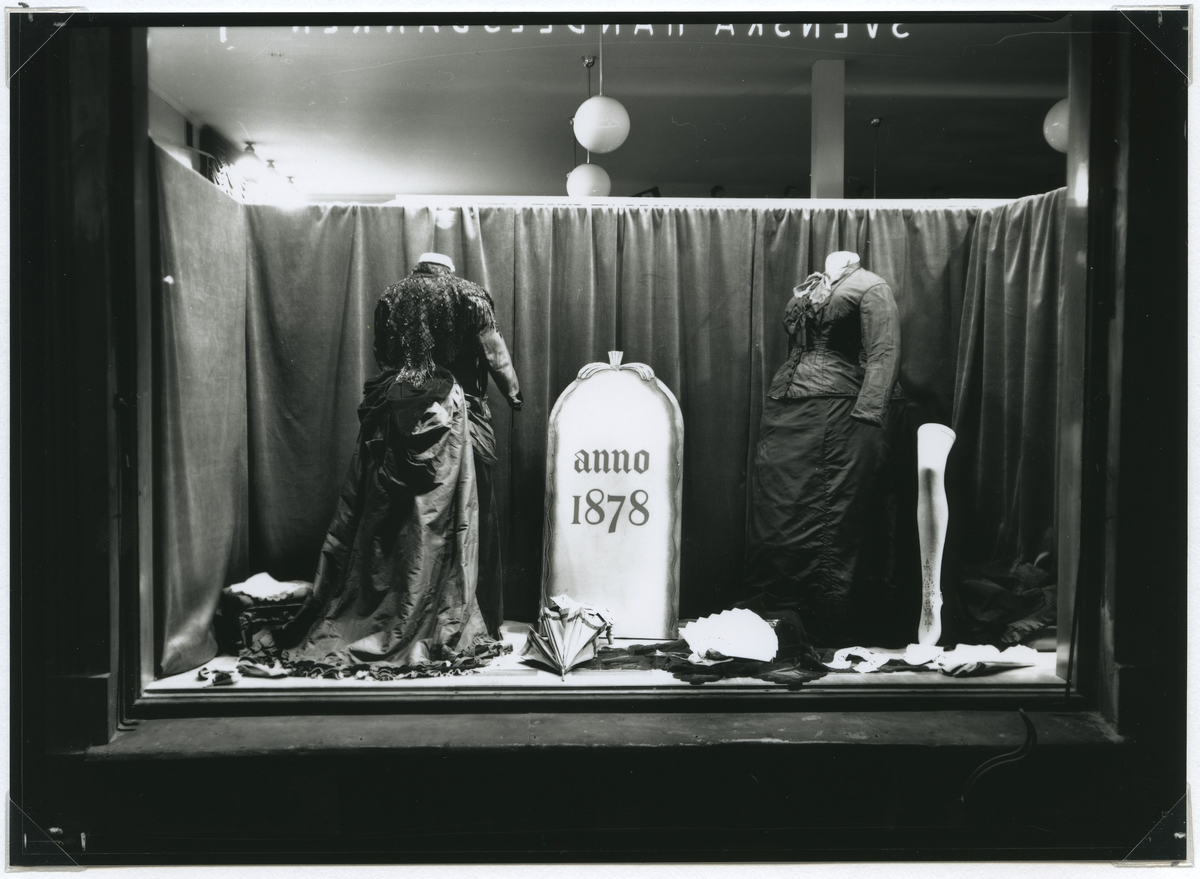 Skyltfönster hos AB Bröd. Berggren. Manufakturhandlare.