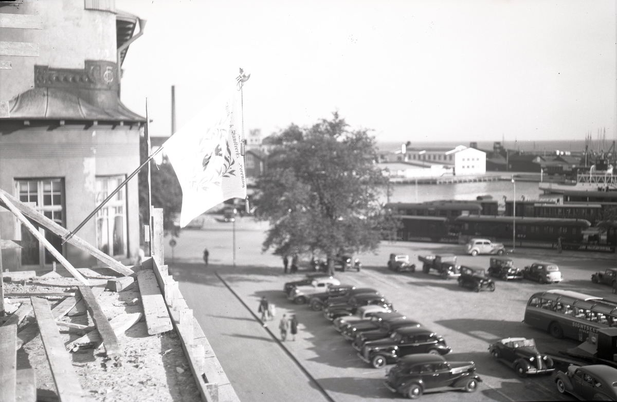 Foto taget från Hantverksföreningens nya husbygge. Vy över Ölandshamnen, stationen.