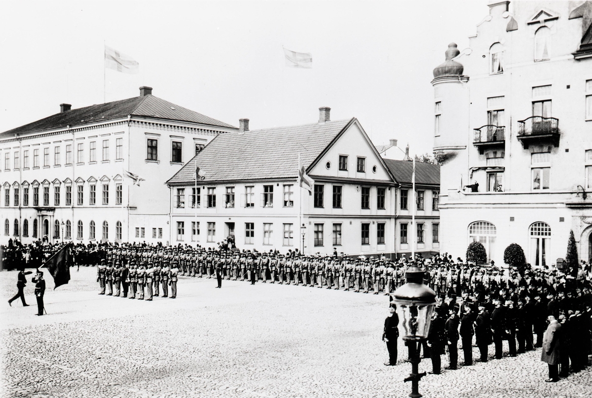 Kungliga Kalmar Regementes 300-årsjubileum firas på Stortorget i Kalmar 1923.
