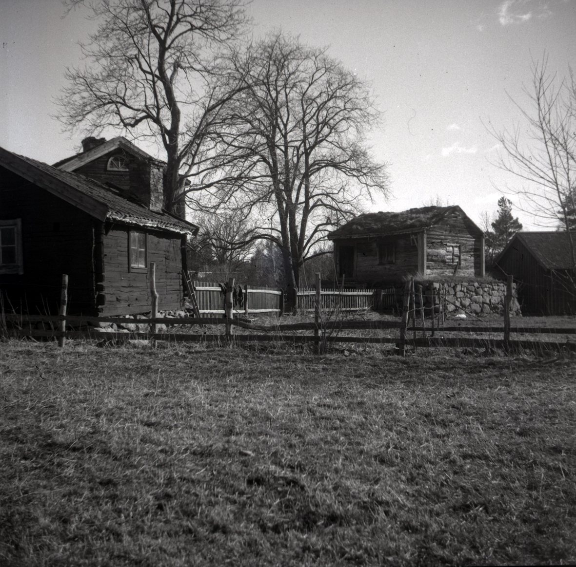 Hagnebo. Mangårdsbyggnad och bod samt källarstuga med liggande timmer.