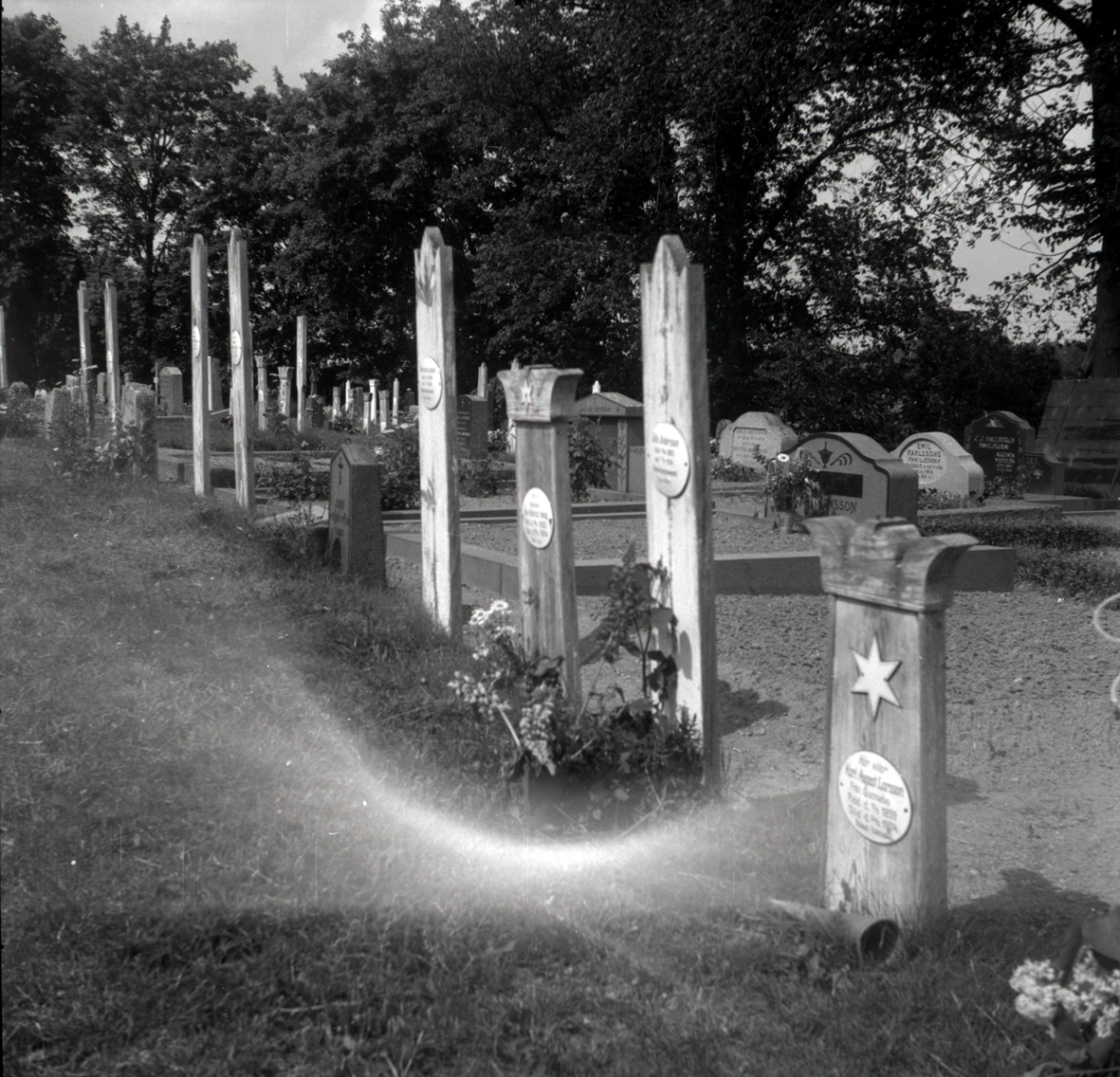 Kyrkogården vid Gladhammars kyrka. Gravvårdar med emaljplåtar från Ankarsrum.