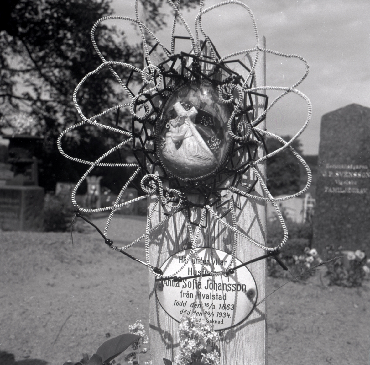 Kyrkogården vid Gladhammars kyrka. Gravvårdar med emaljplåtar från Ankarsrum.
