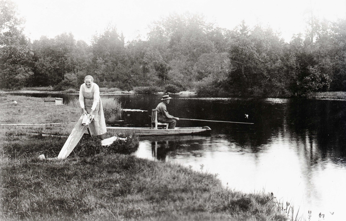 Åholmen vid Alsterån. Familjen Dahl tvättar och metar.