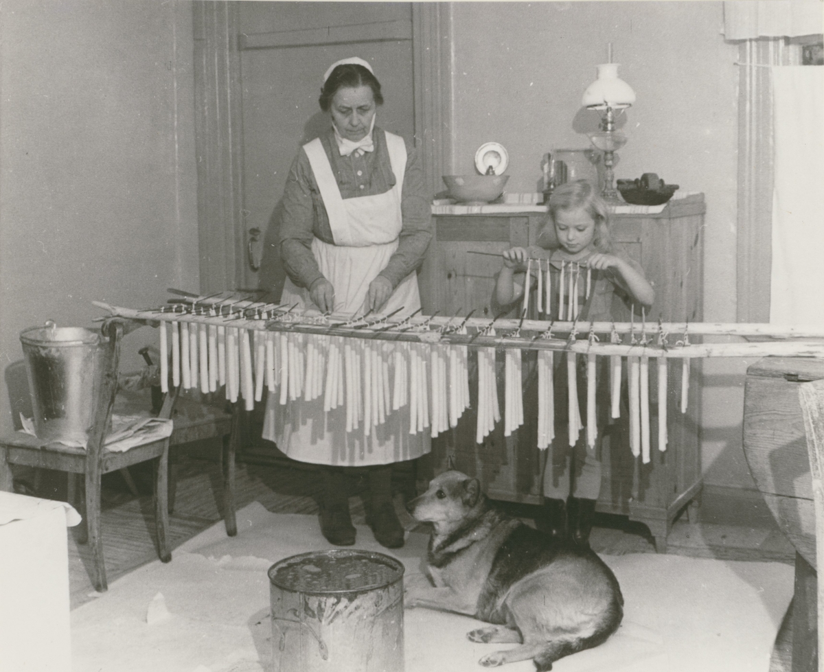 Ljusstöpning julen 1946 på Kvarnaslätts hembygdsgård.