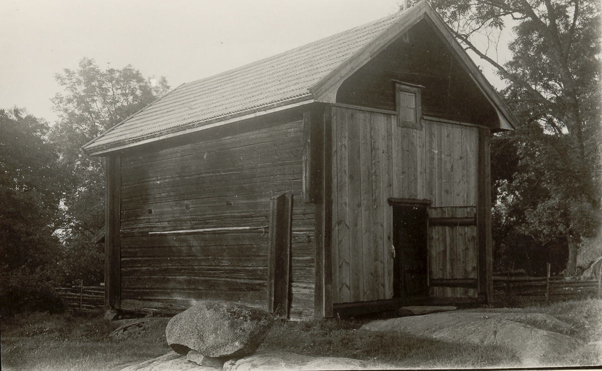 Bod på Karl Fredrik Johanssons ägor. Längd frånsett knutar 6,70 m. Bredd frånsett knutar 4,20 m. Sedd från söder.