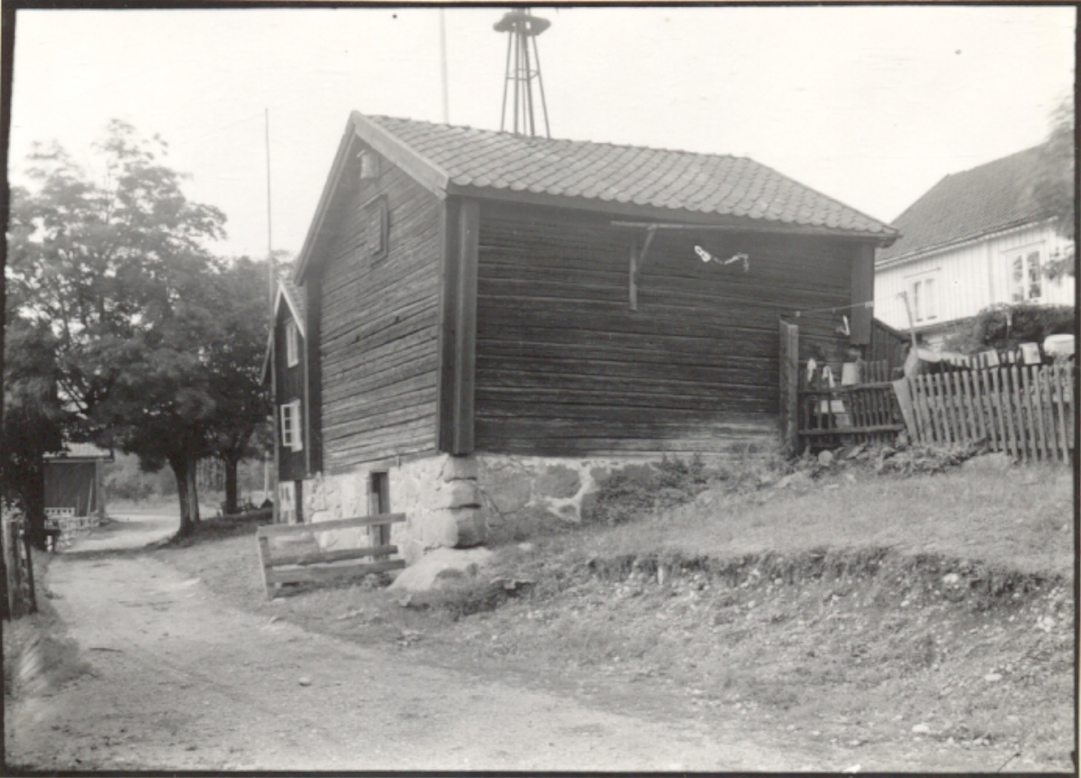 Visthusbod, på taket vinddrivet uppfordringsverk. Längd 6,20 meter, bredd 5 meter. Ägare: Riksdagsman Albert Johansson.