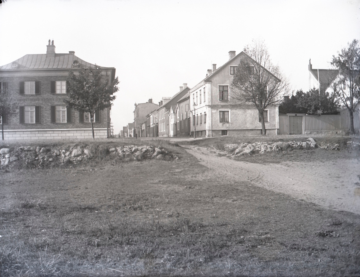 Storgatans mynning ifrån öster. Här låg Holmporten och vallen vars grundmur fortfarande synes.