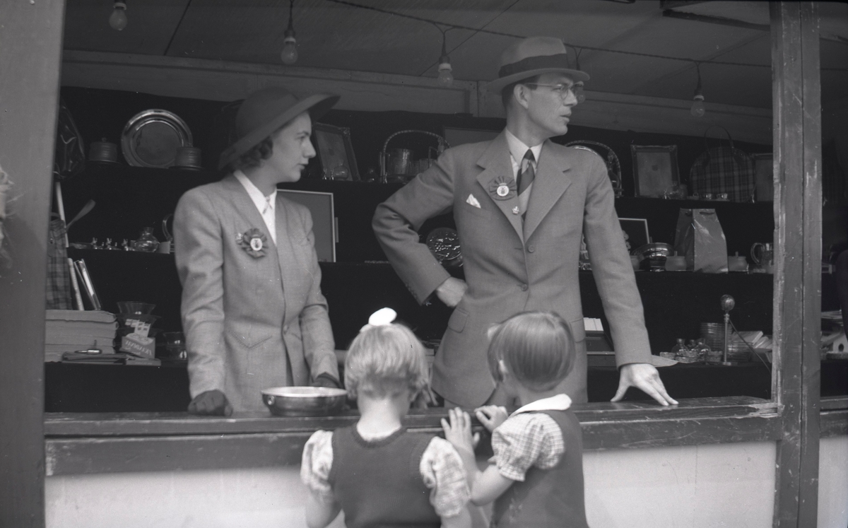 Sjösättning av fartyg på Kalmar varv med festligheter på 1940-talet.