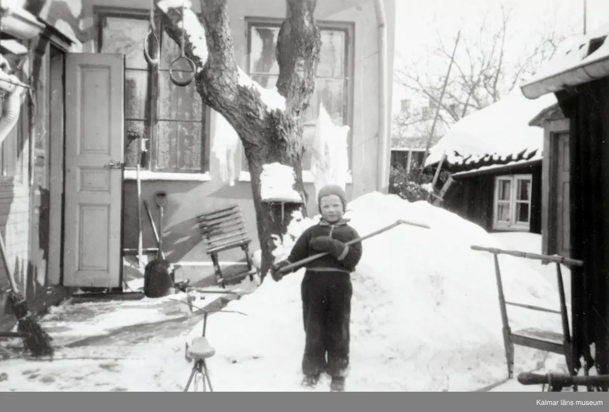 Allan på gården på Västerlånggatan vintern 1938.