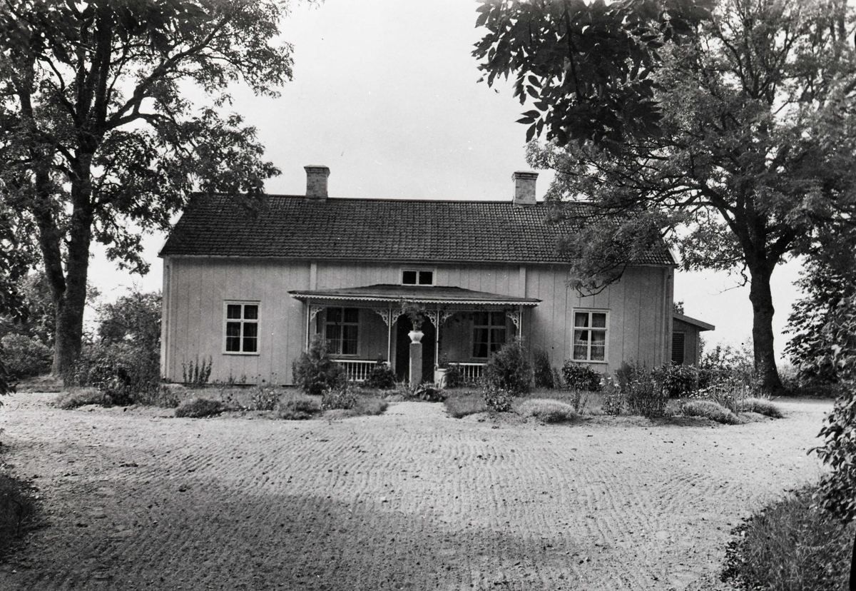 Huvudbyggningen, gulvit, sexdelad plan. Till höger kökskvist.