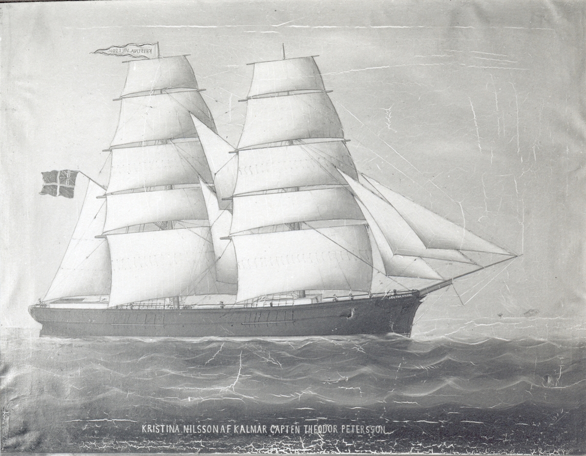 En målning av briggen "Kristina Nilsson" med fulla segel.