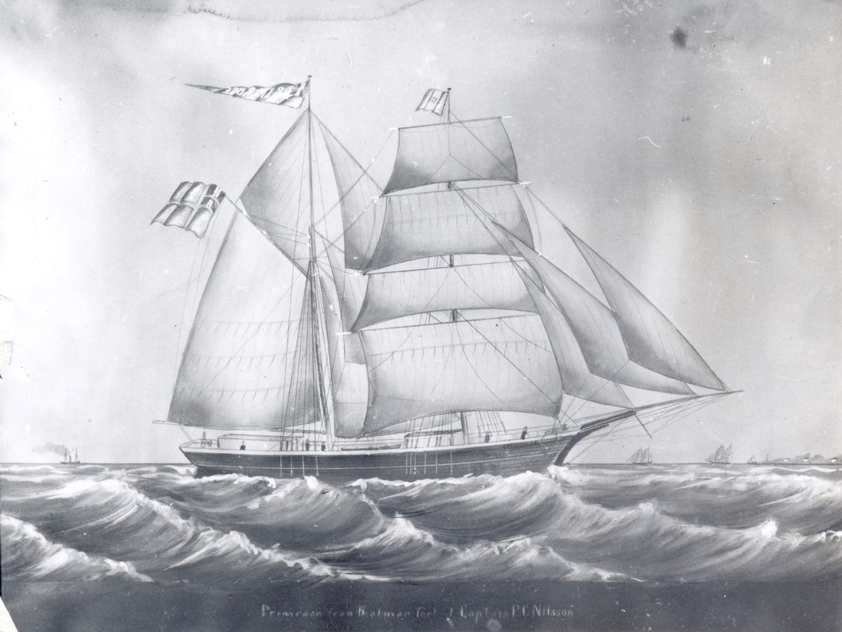 En målning av en skonert.
