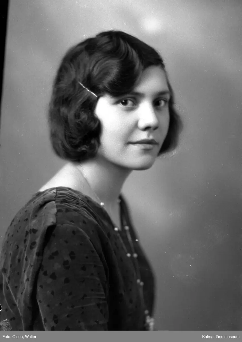 Ateljébild på en kvinna. Enligt Walter Olsons journal är bilden beställd av Irma Norén.