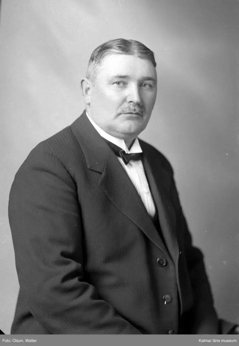 Ateljébild på en man i kavaj. Enligt Walter Olsons journal är bilden beställd av stationsf. Hjalmar Gustavsson.
