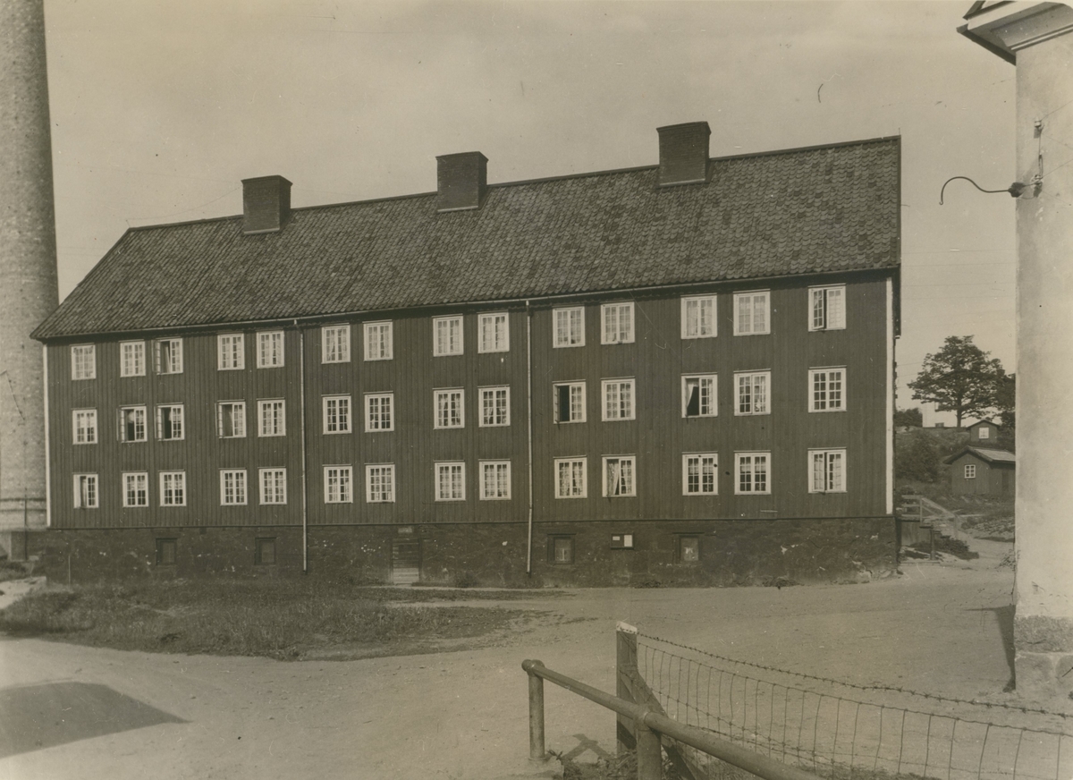 Arbetarkasern vid "torget". Timmerhus i tre fulla våningar på hög, svarttjärad stensockel. Högt sadeltak. Planen har genomgående mittkorridor i längdaxeln, på sidorna härom ligga rummen som celler. Omkring 1850-talet.