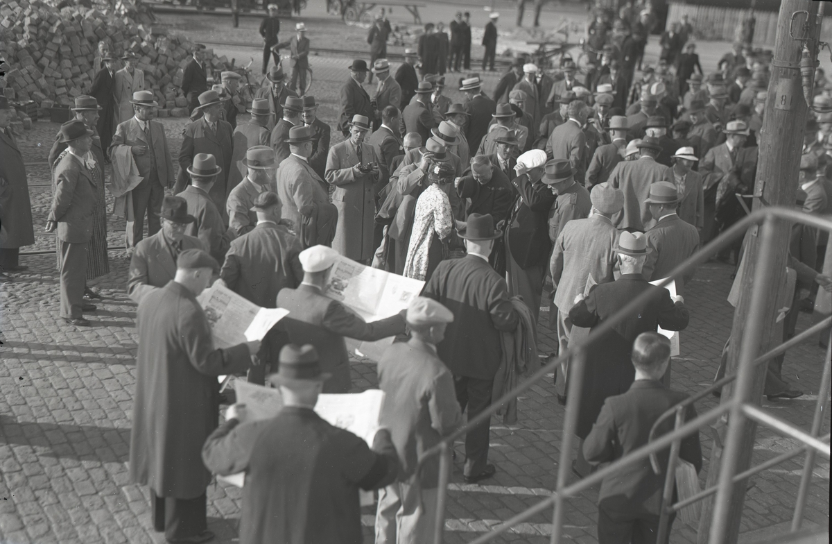 Folksamling vid järnvägsstationen i Kalmar.
