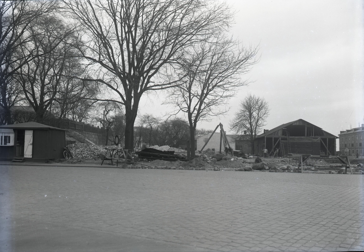 Gasverkstomten där en del av de gamla magasinen har rivits, den nyrestauerade muren syns till vänster efter hand kommer samtliga gamla hus att rivas på tomten.