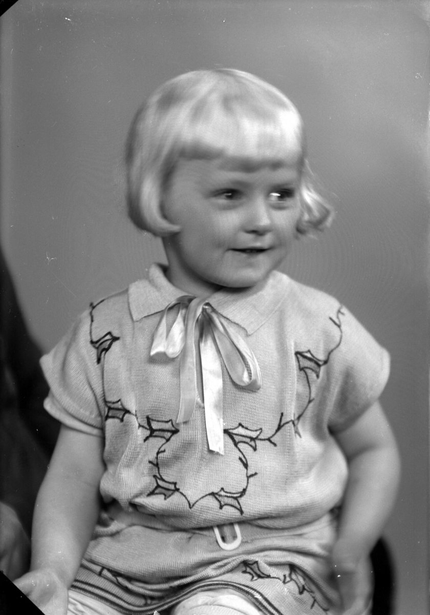 Porträtt på ett flicka, med klänning och band.