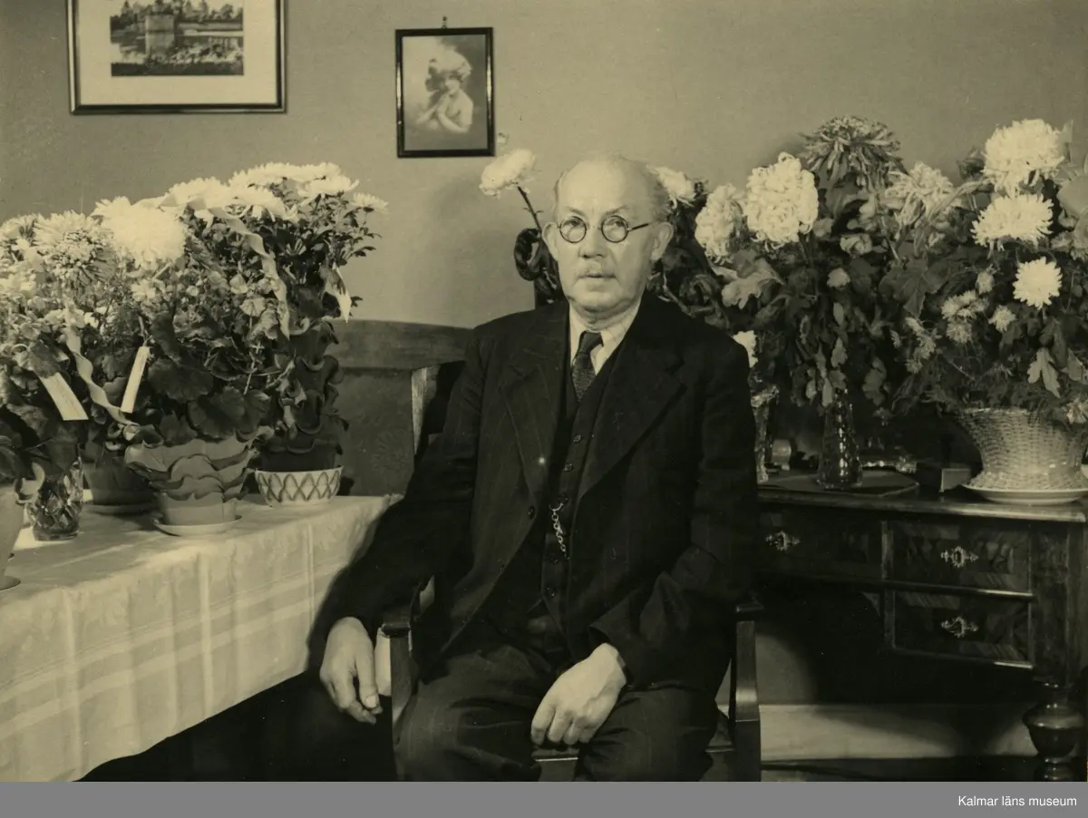Skomakare Gustav Johansson på 70-årsdagen den 9/1948. Fotografiet är taget av brorsonen Åke Tullgård.