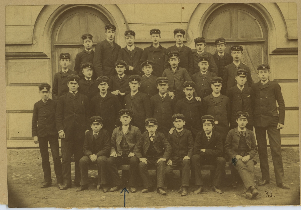 Gymnasister i Kalmar vid gamla läroverket, nuvarande stadshuset.