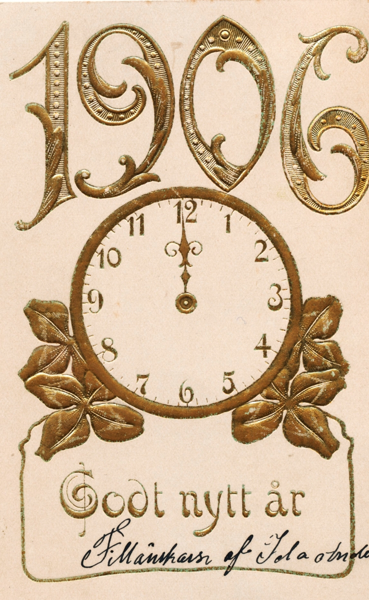 Ett nyårskort till Kristina Nilsson född Andersson och till Edvard Nilsson. Under står tryckt: "Godt nytt år, och skrivet med bläck "Tillönskas af Ida Andersson."