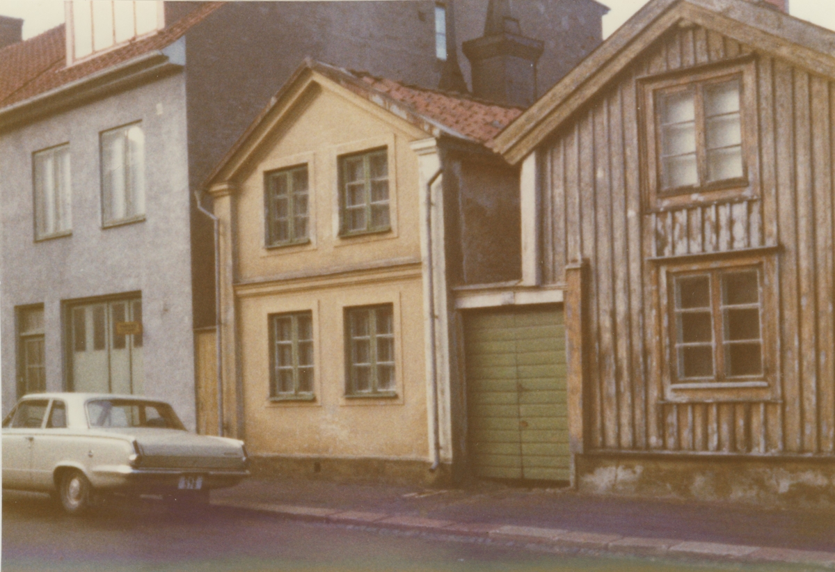 Hörnhuset är Repslagaren 9. Östra Vallgatan - Norra Långgatan. Till vänster en del av bastionen Carolus Philippus. Trähusen är numera (2021) renoverade.
