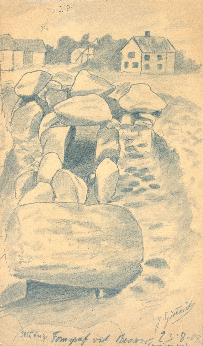 Teckning av 3000-årig forngrav vid Resmo 23-8-02.