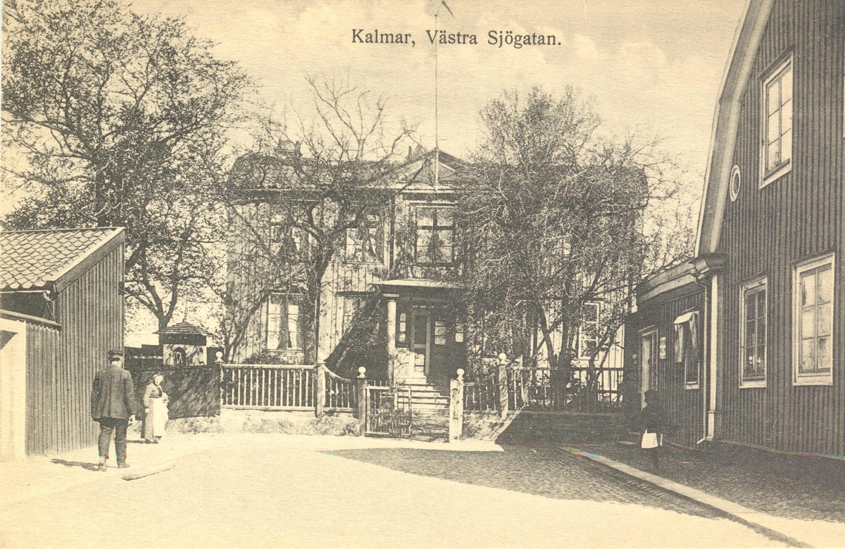 Vykort med motiv från Thernströmska huset på Västra Sjögatan.