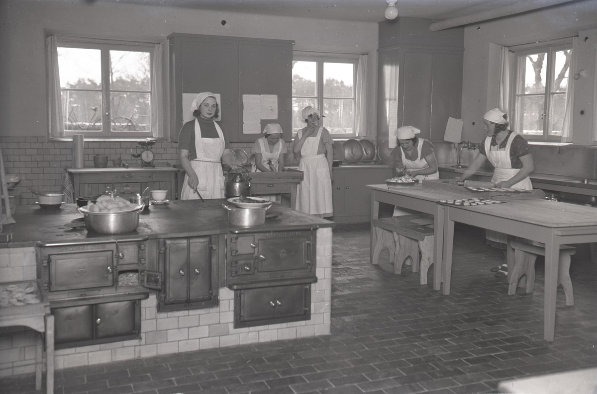 Skolkök, okänt var. Kan vara en av folkhögskolornas.