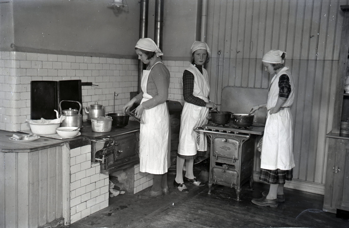 Skolkök, okänt var. Kan vara en av folkhögskolornas.