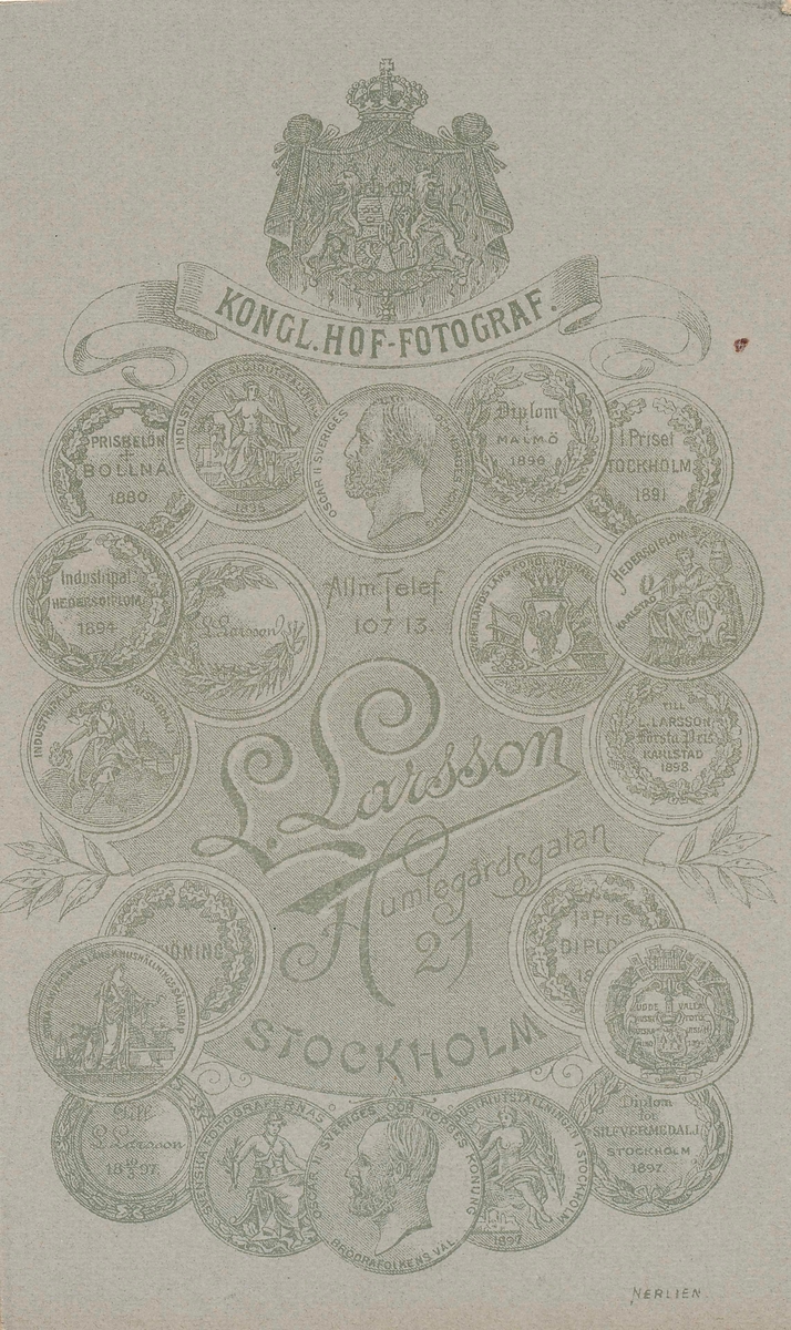 Kongl. Hof-Fotograf L Larsson Humlegårdsgatan 21 Stockholm