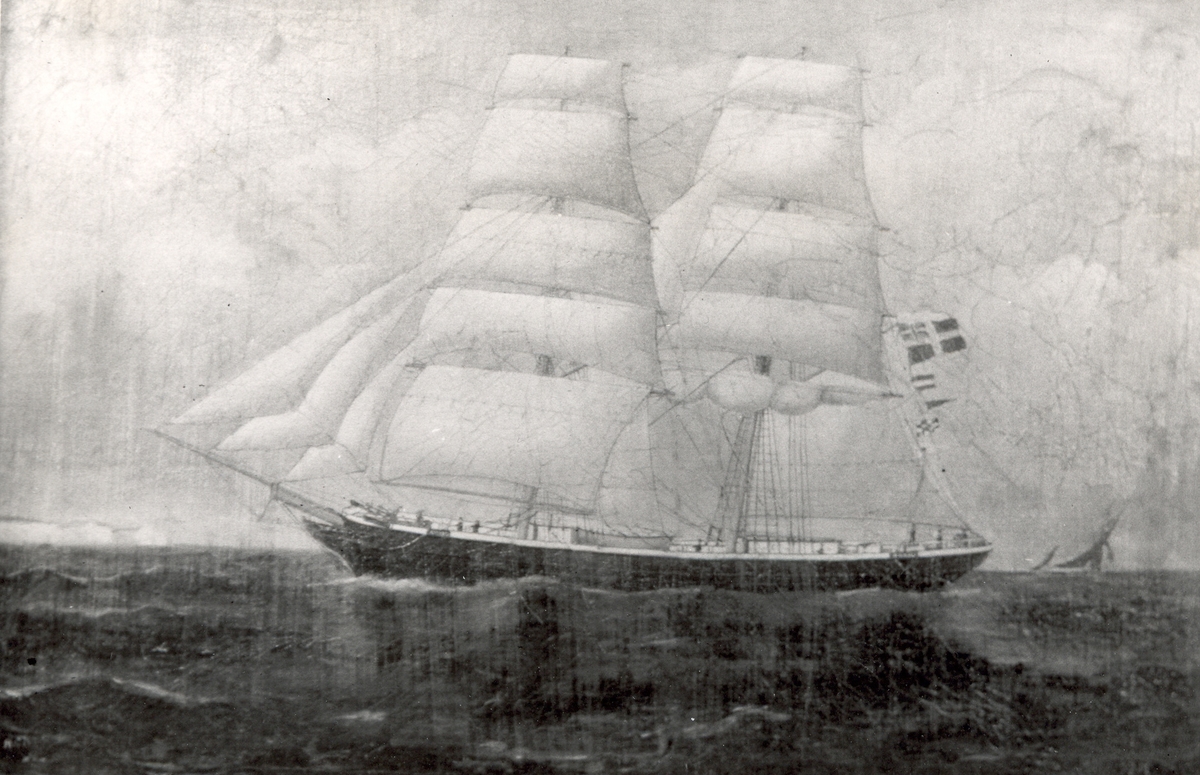 Briggen Alfred af Kalmar, oljemålning på duk signerad H. Chapell omkring 1890 (50x72 cm).