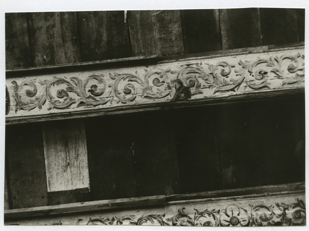 Domprostgården. Målade takbjälkar påträffades 1908 vid ombyggnadsarbeten.