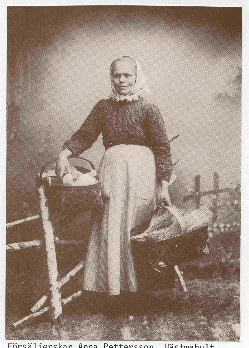 Försäljerskan Anna Pettersson, Hästmahult. Hon reste omkring i hela landet och sålde träslöjd från Gullabo och Torsås c:a1900-1930.
